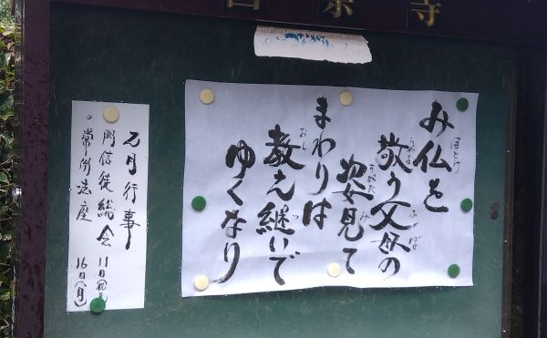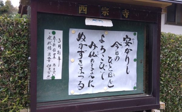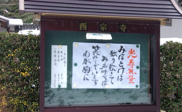 親鸞さまの御正忌報恩講も終わり、一月も半月も過ぎました。 境内のあちこちに水仙の花が凛として咲いています。 先日、西本願寺に参拝しました。 15日には満堂の御影堂でともにお念仏する姿に、涙がこぼるる思いがしたのは私だけだ […]